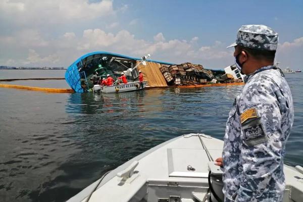 菲律宾海岸警卫队表示:“目前,货轮MV Palawan Pearl号与仍处于半淹状态。船舶周围泛有‘油光’。事故船舶周围已安置围油栏。”