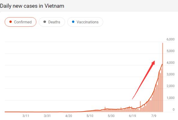 越南拥有 9800 万人口,病例激增给政府增加了增加疫苗供应和加速接种的压力,到目前为止,只有不到 30 万人接种了疫苗。