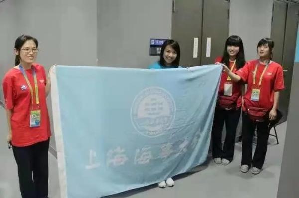 2011年7月16日第14届国际泳联世界锦标赛/王涵(左二)与学校志愿者合影