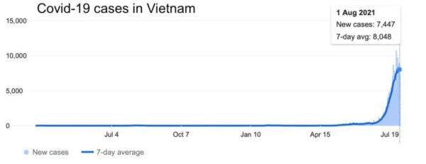 在东南亚地区,马来西亚、越南和泰国等地都正在经历疫情阵痛。其中,大马新增病例数在7月最后一天刷新历史纪录,接近1.8万例。在此之际,泰国单日新增病例也超1.8万例,创下历史新高,部分地方死亡病例太多导致停尸房超负荷。而越南为了遏制“迄今为止最严重的疫情”则重拾封锁措施,对19省市实施了封锁。
