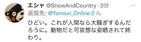 也有网友评论称,“过分。要是人类身上发生这种事会闹得很大。但是发生在动物身上,即使看到这种可怜景象也不会有反应。”↓