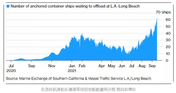 19日,73艘货船堵在洛杉矶港和长滩港,创下纪录,几乎是8月同一时间的两倍。