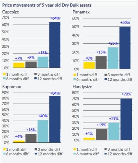 船舶经纪商Allied Shipbroking在其最新的周报中表示:"市场对干散货船买卖的兴趣持续强烈,多艘不同船型的船舶已经换手,其中大量的海岬型船被报告售出。货运市场的坚挺以及买家的强烈购买情绪导致干散货船市场交易量的上升,推高了二手船的价格。油轮方面,在经历了长期低迷后,交易量出现了强劲反弹,但上周交易涉及的大部分油轮与Clean Sea Transport和另一位未披露的买家有关。鉴于油轮业的基本面仍然很差,且资产价格并未回落,预计船舶交易活动将再次低迷。"Allied Shipbroking指出。