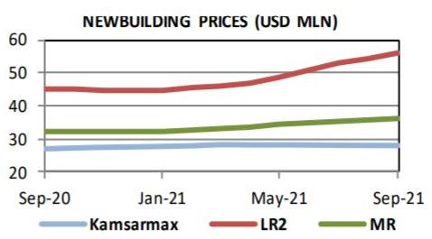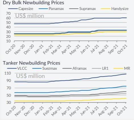 在新造船市场,Allied Shipbroking指出, "本周干散货新造船市场非常平静,过去的7天里没有新造船的报告。尽管强劲的货运市场和买家的健康情绪有助于维持船东对新造船的兴趣,然而,由于新造船价格高企,以及船厂倾向于建造集装箱船和天然气船,到目前为止,干散货新造船活动仍维持在温和的水平。这种“克制”的做法对船东或许是有利的,之前对市场的过度自信产生的订购狂潮,最终导致市场供应急剧过剩。