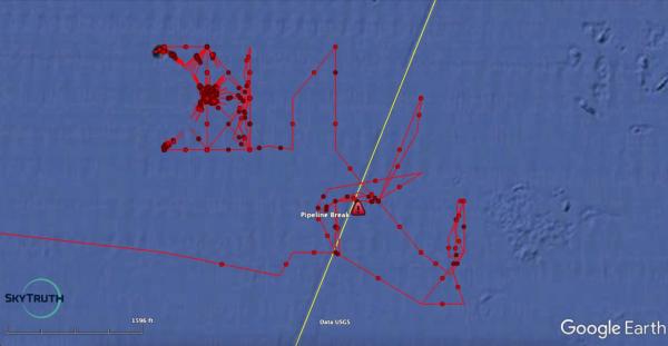 “可能一艘(或几艘)船损坏了管道,并引发了一连串事件,导致石油泄漏。管道被锚钩住并拖动,4000英尺长的管道位移了大约100英尺,管道的混凝土外壳断裂,"首席调查员杰森-诺伊鲍尔上尉在10月8日的新闻发布会上说:"我相信这就是使管道偏移的最初原因。”据诺伊鲍尔的说法,来自ROV(遥控无人潜水器)的证据表明,拖锚事故最初发生的时间比首次报道漏油事故的时间早了几个月至一年。