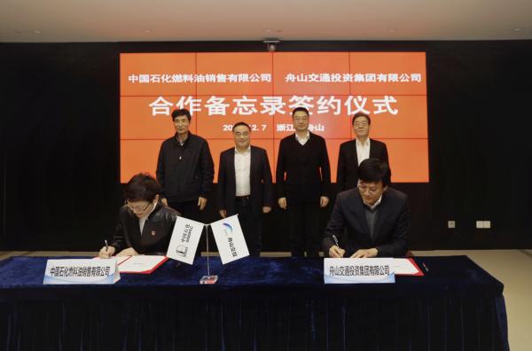 2021年12月7日下午,中国石化燃料油销售有限公司(以下简称“中石化燃料油公司”)与舟山交通投资集团有限公司(以下简称“舟山交投集团”)合作备忘录签约仪式在舟山成功举行。