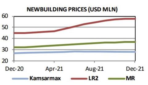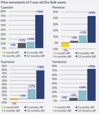 船舶经纪商Allied在其最新的周报中表示,"在过去的一周里,市场仅出现了一笔新造船订单(来自希腊的2艘海岬型船订单)。与强劲的运费收益和船东的热烈情绪相比,今年新新造船活动一直保持温和。新造船价格的上涨、船东对未来供应过剩的担忧以及船厂对其他船型(如集装箱船、天然气船等)的偏好,都是限制干散货板块新造船的主要因素,而这一趋势可能会持续到新的一年。”