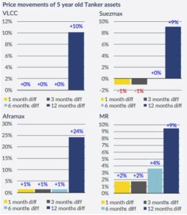 同时,,Allied表示,"二手船交易市场中,在干散货板块,由于前期运费波动较大,破坏了长期以来的二手船交易火爆情绪。但随着货运市场的恢复,预计更多的交易将在近期发生。油轮板块,这是令人相当沮丧的一周,二手船买卖依旧冷清。”