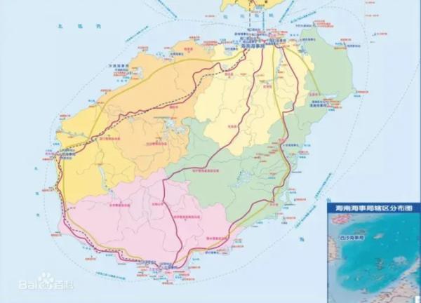 海南海事局代表国家负责行使辖区水域水上安全监督和防止船舶污染、航海保障管理和行政执法。所辖海域,北部毗邻广东、广西海事局辖区,辖区为琼州海峡及下列东北、北界线以南我国管辖海域(上图),下设海口、八所、洋浦、 三亚、清澜、三沙等6个分支海事局。
