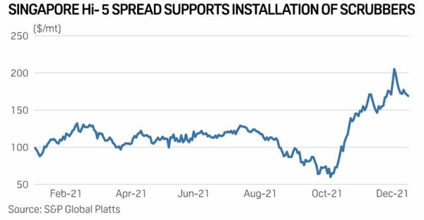 业内人士表示,随着人们对脱硫塔技术及其在解决温室气体排放方面的熟悉,对其使用的怀疑态度有所减弱,因此,脱硫塔安装量的增加正在支撑HSFO的需求。