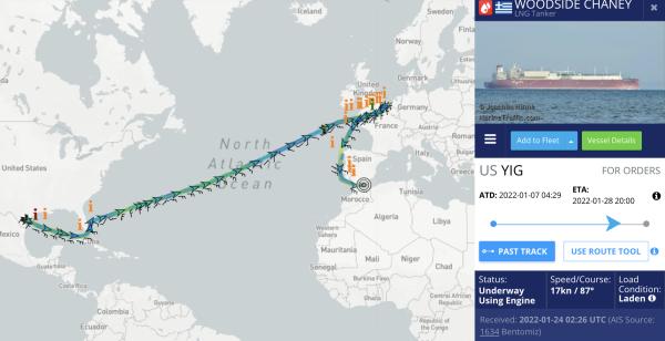 根据这名贸易商的透露,在这些货物中,在德克萨斯州装货的“Bushu Maru”轮油从之前的航线转向法国敦刻尔克码头,然后穿过巴拿马运河前往日本;在德克萨斯州Corpus Christi液化码头装货的“Woodside Chaney”轮向东驶向英吉利海峡,然后转向地中海前往新加坡。