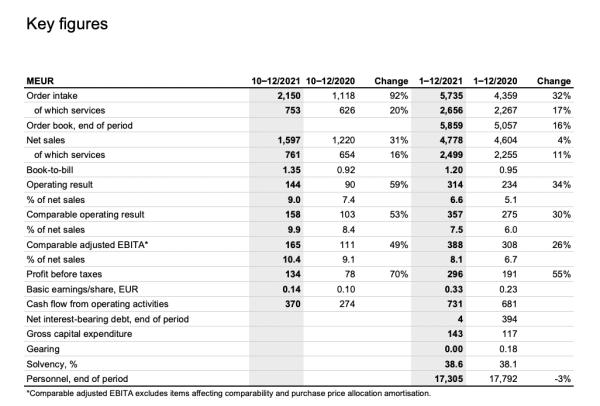 1月28日,瓦锡兰公布了2021年度财务报表,该公司在订单、净销售额、经营成果和现金流都得到改善,1-12月,瓦锡兰订单量增长32%,达到57.35亿欧元,净销售额增长4%,达到47.78亿欧元,经营活动的现金流增加至7.31亿欧元。
