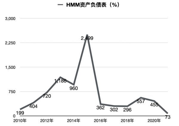在大赚特赚后,HMM资产负债率也显着改善。2015 年,该公司资产负债率飙升至 2,000% 左右,去年这一比率已降至 73%。HMM表示,不会满足于创纪录的业绩,将通过投资提升公司在全球的竞争力。据了解,大宇造船和现代重工正在建造的12艘13,000 TEU级超大型集装箱船将在2024年上半年交付给HMM。