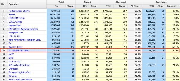 在重组完成后,太平船务曾表示重组计划将使其成为“一家资本充足的公司,拥有稳健的财务结构和弹性,从而有能力应对和缓解班轮行业未来的周期性”。根据Alphaliner的数据,目前该公司共运营85艘集装箱船,总运力达到276,600TEU,其中61艘自有船,24艘租赁船,继续排名全球班轮运力排行榜第十二。