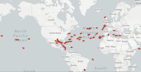 来自MarineTraffic的船舶AIS数据显示,满载美国液化天然气的船队正在前往欧洲,只有一小部分美国货物运往亚洲。