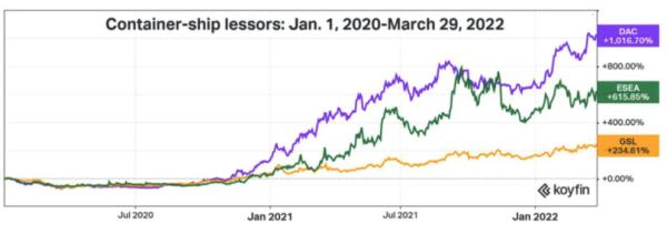 船东似乎并没有因为租船活动的减缓而感到不安。毕竟,仍处于历史上最大的繁荣期。自2020年1月1日以来, Danaos公司的股票上涨了1017%,Euroseas公司上涨了616%,GSL上涨了235%。