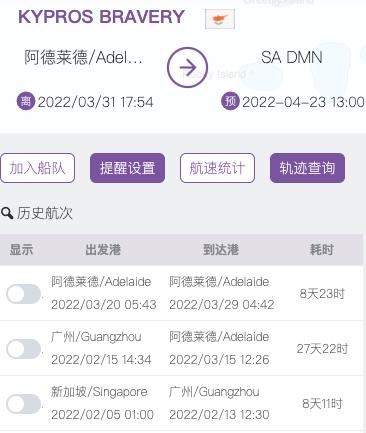 根据宝船网提供的最新船舶AIS显示,“Kypros Bravery”轮于2月15日从中国广州出发,3月15日抵达澳大利亚阿德莱德,并在阿德莱德港呆了长达半个月之久,于3月31日离开前往达曼港,预计将在4月23日抵达目的地。