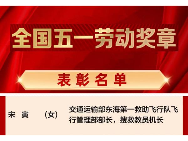 4月28日,中华全国总工会召开大会,表彰2022年全国五一劳动奖和全国工人先锋号获得者。交通运输部东海救助局宋寅机长荣获全国五一劳动奖章。