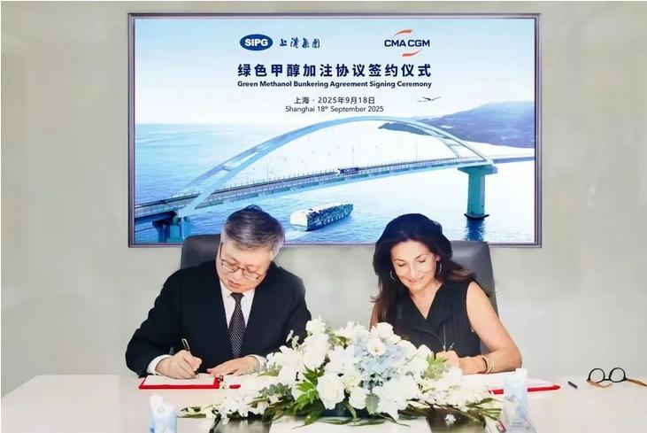 2025年9月18日,达飞集团与上港能源在上海签署 《生物质甲醇加注服务合同》。此次合作标志着崭新的里程碑,为国际航运能源转型和低碳发展注入强劲的绿色动能。