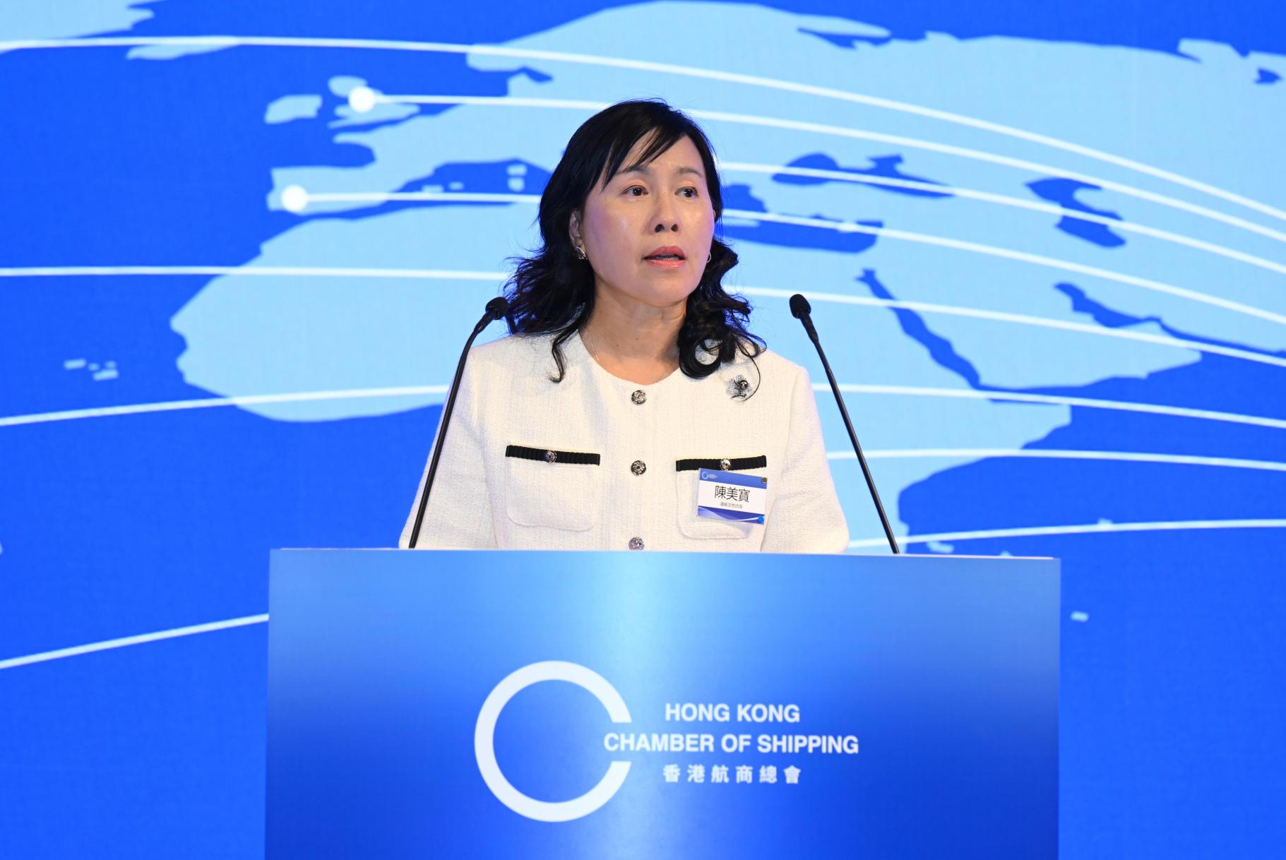 香港特别行政区政府运输及物流局局长陈美宝则指出,航运物流业一直是香港经济的重要支柱。目前,特区政府正全力推进五大重点工作:一是强化海运业生态,吸引大宗商品贸易商并提升船舶注册竞争力; 二是落实《绿色船用燃料加注行动纲领》,打造香港为绿色燃料加注及交易中心; 三是促进本地与海内外业界对接,拓展全球商机; 四是拓展内地货源,并逐步启用港口社区系统,推动航运业数字化智能化发展; 五是加强顶层设计、制度革新,与新成立的香港海运港口发展局携手探索具前瞻性的策略。最后,她祝愿香港航商总会继续发挥平台作用,凝聚业界力量,共同推动香港航运业高质量发展。