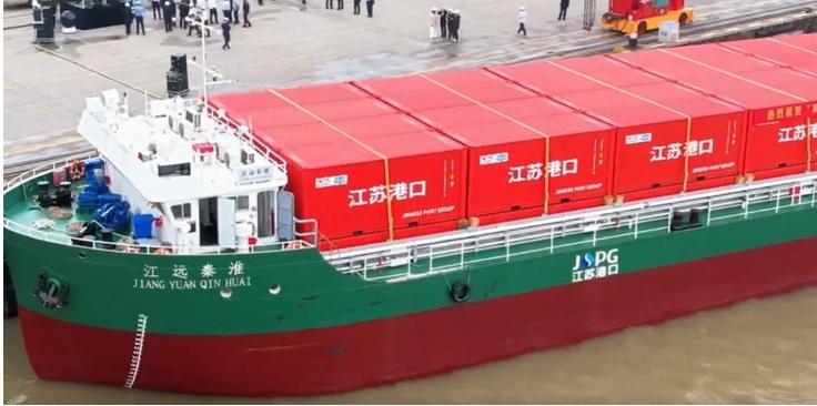 近年来,江苏省委省政府高度重视绿色水运发展,《关于加快打造更具特色的“水运江苏”的意见》中明确提出“加快推动绿色船舶发展”。在省交通运输厅指导下,省港口集团积极贯彻落实省委、省政府部署,扎实推进内河运输船舶向环保高效转型,积极推动江苏远洋在成功建成运营全国首艘120标箱纯电动内河集装箱船舶“江远百合”轮,并在技术标准、船员培训规范、船舶配员试点等方面取得一定成果的基础上,又规模化建造5艘纯电动内河集装箱船舶,陆续投入京杭运河南京至徐州段运营。