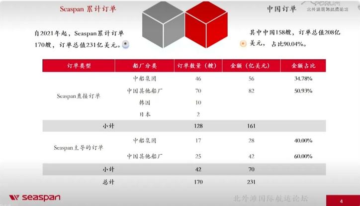 值得一提的是,自成立以来,Seaspan便是中国造船坚定的支持者,抛开地缘政治,单从商业规则角度来看,中国船厂在产能、价格、质量、交付稳定性上均处于全面领先的地位。从2021年以来,Seaspan也以一份份订单投出了对中国造船的信任票。据统计,过去四年来,Seaspan自造船或替客户下单的船舶已经超过了170艘,其中在中国下单的船舶超过158艘,总金额超过208亿美元。而之前提到的船舶改造项目,我们几乎全部是在中国修船厂完成的。此外,我们同中国船厂、金融机构、客户共同协作,实现人民币在造船、融资、租约等各领域的全场景应用,切实推进了人民币国际化在航运领域的发展。