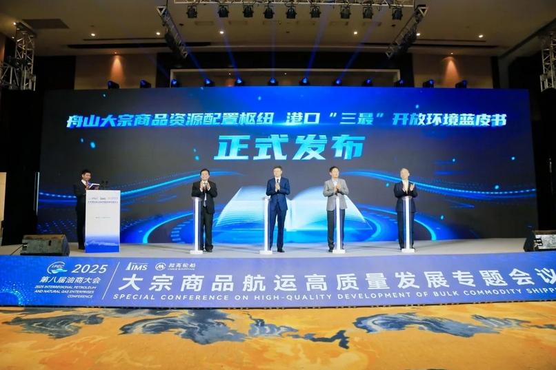 大会期间,中国物流与采购联合会与浙江省发展规划研究院联合首次发布《舟山大宗商品资源配置枢纽港口“三最”开放环境蓝皮书》。该蓝皮书系统梳理了舟山港在政策创新、营商环境优化、基础设施建设和产业服务能力等方面的实践与成效,为全国大宗商品枢纽港建设提供了参考与借鉴。中国物流与采购联合会党委常委、副会长何辉在发布会上详细介绍了舟山在大宗散货领域取得的“三最”标志性成果,并指出,这些成果充分彰显了舟山作为全球重要大宗商品资源配置枢纽港的战略地位与发展潜力。
