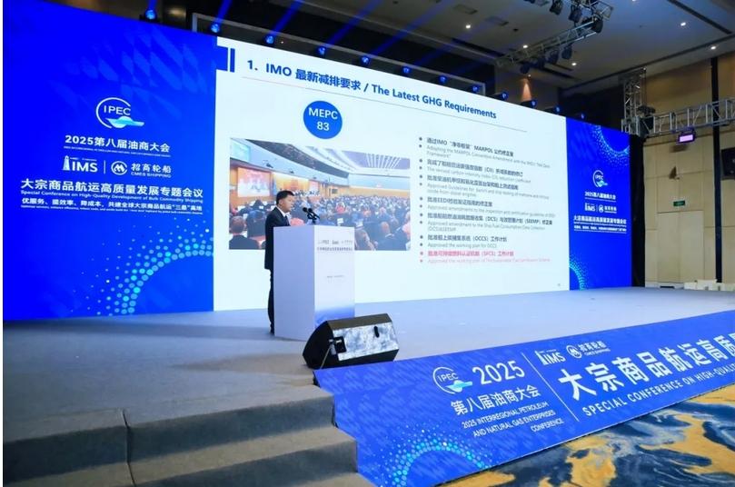 CCS上海规范研究所法规与绿色技术研究部主任简炎钧为与会嘉宾分享《IMO最新减排要求与船舶绿色转型展望》。他表示,尽管最新IMO会议暂停审议“净零框架(NZF)”MARPOL 公约修正案事项一年,增加了中期措施的不确定性,但IMO 减排战略和目标未变,国际航运的绿色低碳转型进程会继续。提升能效技术,采用生物燃油或LNG燃料将是近期应对减排要求的主要措施,中长期,船东应着眼国际航运减排及船用燃料转型发展趋势,采用可持续燃料动力或OCCS技术。