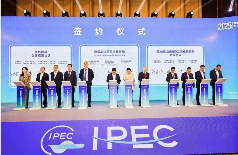 会议现场举行了规模盛大的签约仪式,两大批次、多个项目相继落定。首批签约聚焦绿色新能源领域,其中,舟山高新区与江苏安德福、比利时航运成功签约“液氨加注项目”,中船燃则与中核汇能、中国电力工程顾问集团、上海岚泽能源、中国氢能公司达成“绿色甲醇船用燃料供应合作”,这些项目的签约充分展现了舟山在积极构建未来绿色燃料供应链方面的提前布局和市场吸引力。第二批签约重点集中于数字化应用的落地实施,中石化、中石油、中船燃分别与东方同舟、实华南油、锦辉海运、溢沣润海运、浙江启宸等驳船企业,以及大宗易行、大宗数科这2家数字技术服务商携手,就“e-BDN数字化交接系统”的广泛应用正式达成了系列合作协议。