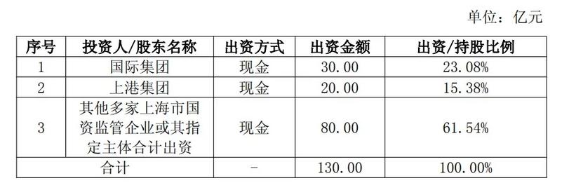 据了解,上港集团本次投资采用分期支付的方式进行出资,公司拟于 2025 年和 2026 年分别出资 10 亿元,总计持股比例为15.38%。各出资主体及持股比例如下: