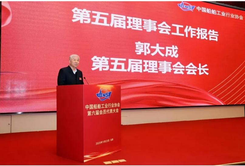 2025年11月23日,中国船舶工业行业协会第六届会员代表大会在北京隆重举行。大会全面总结了中国船协第五届理事会期间的工作,审议通过各项报告及议案,选举产生第六届理事会和第一届监事会。工业和信息化部装备工业二司司长徐春荣,第五届理事会会长郭大成、常务副会长吴强、常务副会长陈民俊,第六届理事会候选领导人,以及会员单位代表、有关省市船舶协会负责人和嘉宾等共三百余人出席会议。大会由第五届理事会常务副会长吴强主持。