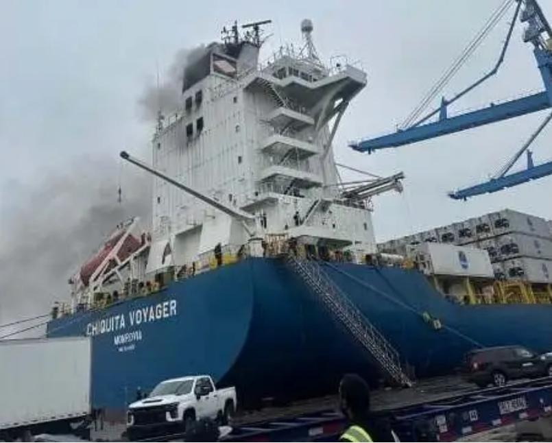 据外媒消息,当地时间周三上午,悬挂利比里亚旗的集装箱船 “Chiquita Voyager”轮在靠泊美国威尔明顿港期间机舱突发火情。