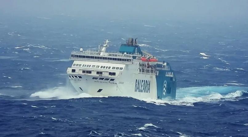 据外媒报道,“Ciudad de Mahon”轮于当地时间周六深夜自阿尔赫西拉斯港离泊,原计划前往北非城市休达。受风暴 Emilia 影响,航行区域风力达到7级,海况明显恶于预期。船舶离港后不久即在强烈涌浪中出现剧烈纵摇和横摇,并在周日凌晨遭遇巨浪冲击船体,导致船舶瞬间大幅倾斜,螺旋桨短暂露出水面。基于航行安全考虑,船长随即决定终止航程,返航阿尔赫西拉斯。