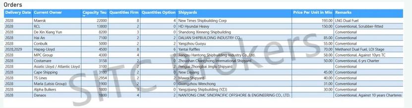 新船交易方面,两艘 1050 TEU 级集装箱船 “FAN SHUN QIN HUANG DAO” 号与 “YANG FAN QI HANG” 号成功出售。该两艘船舶与 2025 年 7 月行业报告中披露的 4 艘成交船舶同属同一船型系列,同属越南买家。