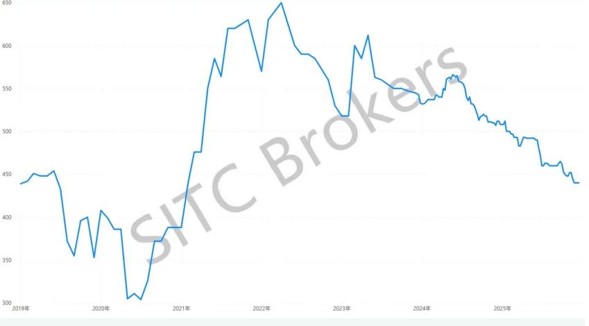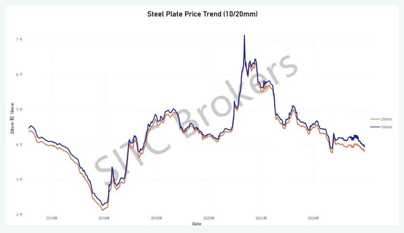 2025 年 11月钢板价格持续走低,或为造船成本带来利好。
