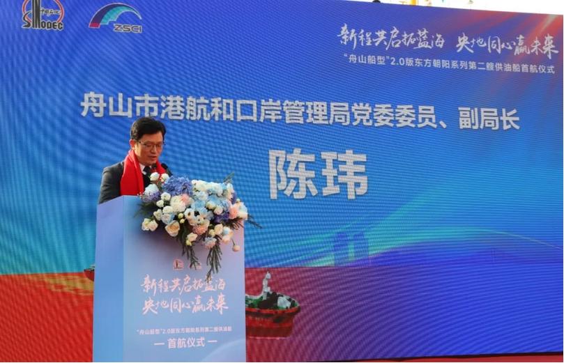 舟山市港航和口岸管理局副局长陈玮在致辞中强调,“舟山船型”船队规模逐年扩大,2.0版新船型更是优化升级技术性能,实现安全与效率双提升。“东方朝阳2”的首航标志着“舟山船型”2.0版供油船从首制突破迈向系列化、规模化发展的新阶段。