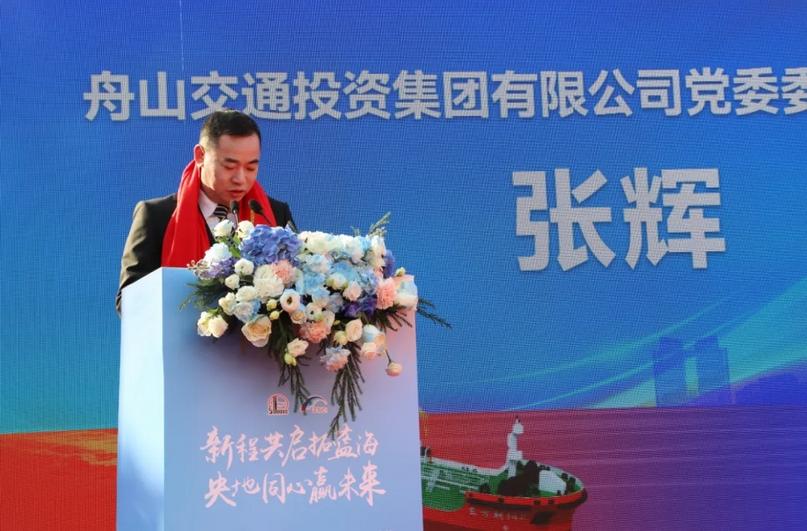 舟山交投集团副总经理张辉作为船东代表,向关心支持“东方朝阳2”轮建设及投运的相关单位及人员致以最诚挚的感谢,并对交投集团未来深化与各方的战略合作、助力舟山现代海洋城市建设的愿景表达了坚定信心与期待。