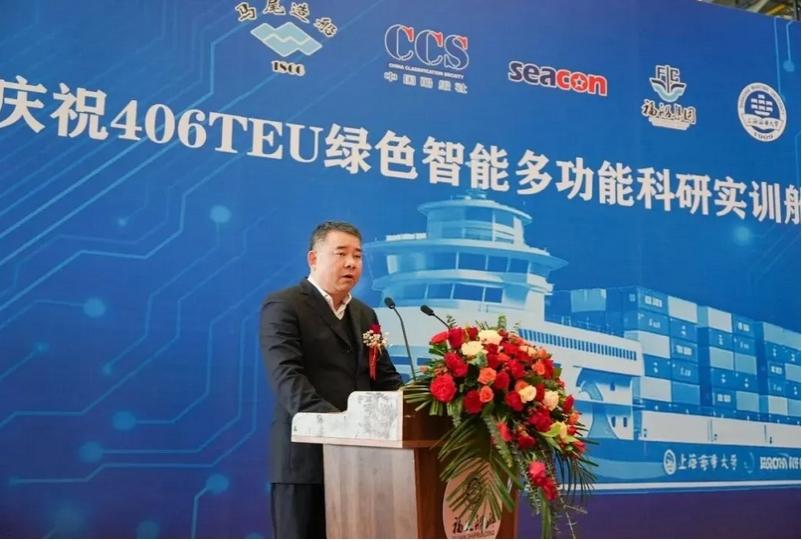 宋宝儒代表上海海事大学向参与船舶建造的各方表示感谢。他指出,当前全球航运业正经历一场以绿色化、智能化、低碳化为标志的深刻变革。这既是历史机遇,更是换道超车服务交通强国、海洋强国建设的重要抓手。这艘科研实训船的建造,集中体现三方面创新:一是推动航运新质生产力发展。围绕航运“三化”转型,推动“设计—建造—试验—应用”全链条贯通,聚焦自主航行与岸基驾控、智能机舱运维等关键领域,力争成为全球首艘符合IMO MASS规则的示范船;二是打造政产学研用融合的科研新范式。坚持与各方合作单位“优势互补、协同攻关、场景牵引、标准先行”,形成深度融合的创新模式,做成行业可复制、可推广的标杆工程;三是推进高素质航运人才培养。落实“为科服务、为产育人”的理念,推动人工智能、绿色能源等前沿科技融入课程体系,培养具有船端操作、岸基管理与系统研发能力的复合型人才,为航运事业高质量发展提供坚实人才支撑。