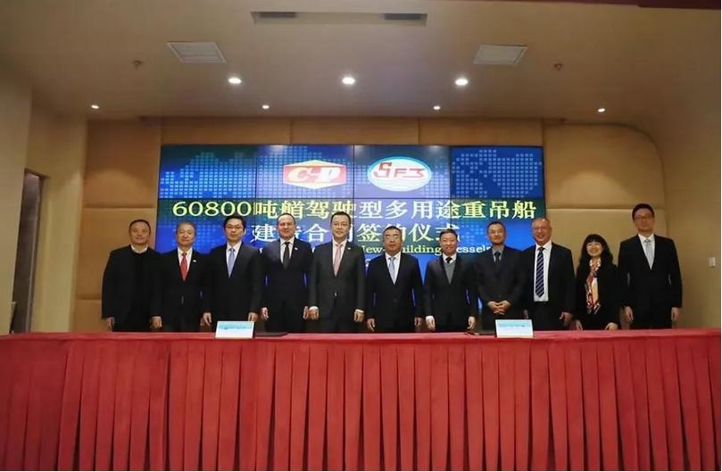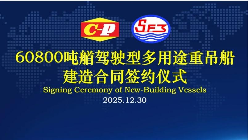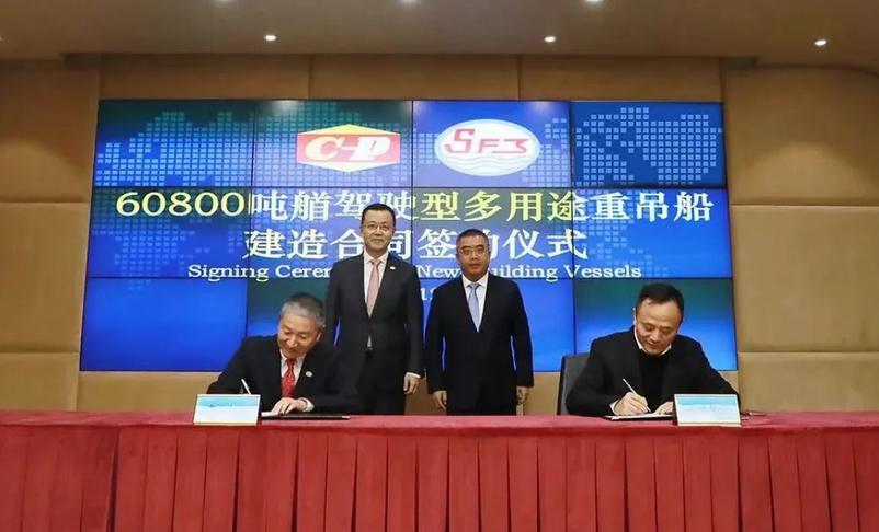 12月30日下午,中波公司在上海总公司签署4艘60800载重吨艏驾驶型多用途重吊船项目建造合同。