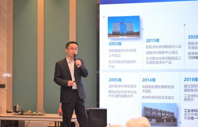 上海海隆赛能新材料有限公司副总经理张建重点推介了有机硅防污漆解决方案。通过构建超光滑表面降低船体摩擦阻力,该产品在节能减排方面具备明显优势。他同时强调了该类涂层在坞修施工中的工艺控制要点,提示施工质量直接决定后期性能稳定性。