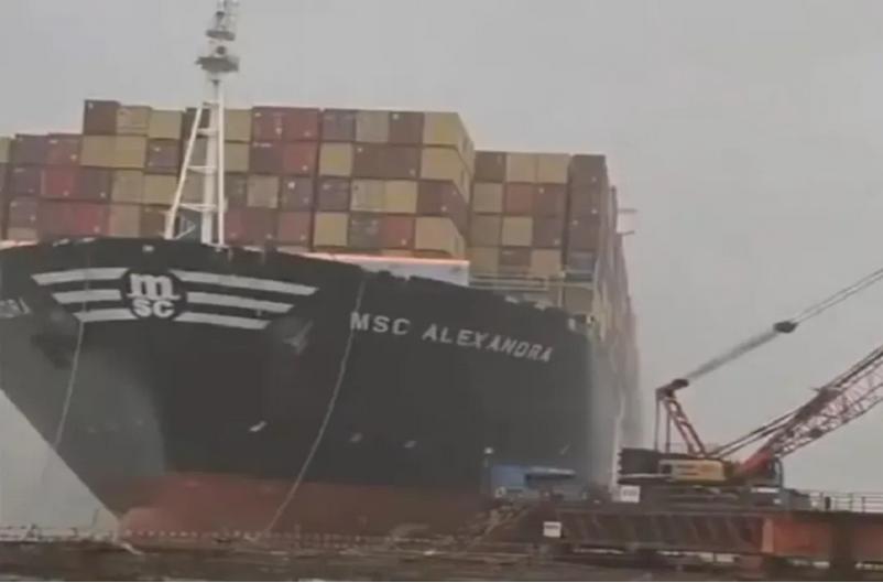 据当地气象部门预警,当日清晨起卡奇地区已出现类似风暴的极端天气过程,强阵风持续冲击港区。停靠于蒙德拉港CT3码头的“MSC Alexandra”轮未能抵御强风,其系泊缆绳在高风速作用下发生断裂,导致船舶迅速脱离控制,在港池水域内发生漂移。