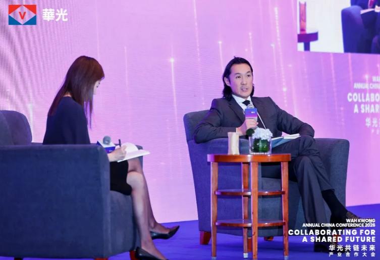 华光海运董事长赵式庆先生以及合作伙伴拓展与企业宣传经理许艺馨女士展开炉边对话,题为“协作共赢:全球航运视角及华光伙伴协作愿景”