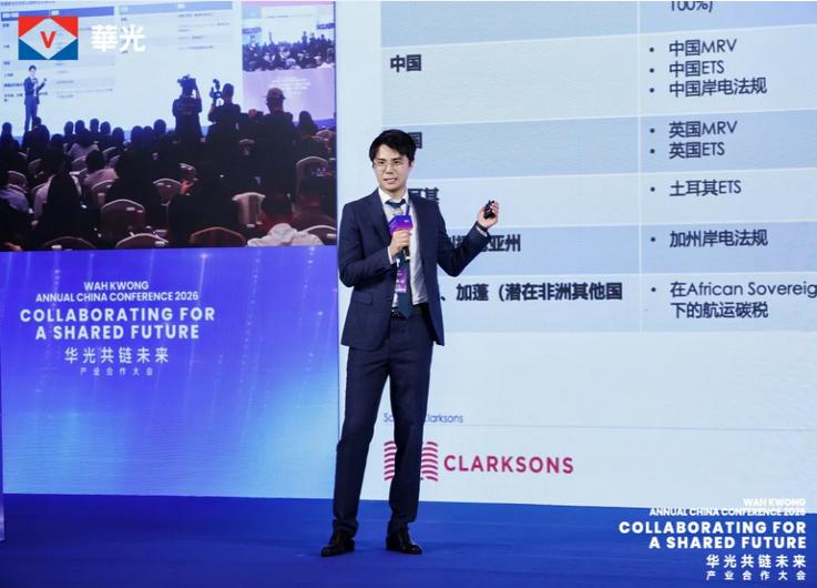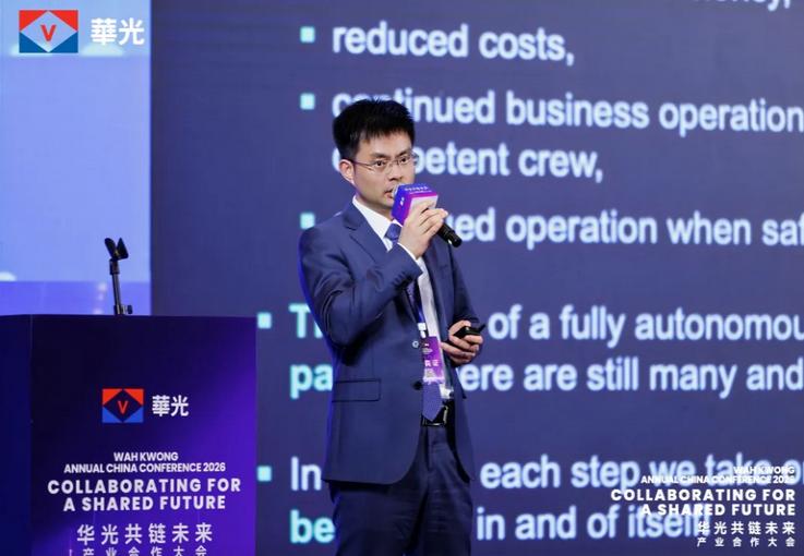 后续议程探讨了2026年航运业的投资机遇与风险,包括监管不确定性、碳排放限制以及船队更新。关于脱碳的主题演讲评估了国际海事组织净零框架、欧盟碳排放交易体系要求,以及替代燃料的实际挑战。华光船务分享了在推进新能源加注、环保技术与数字化方面的经验,而智能航运技术的专题简报探讨了智能系统如何融入船舶设计、建造与运营。