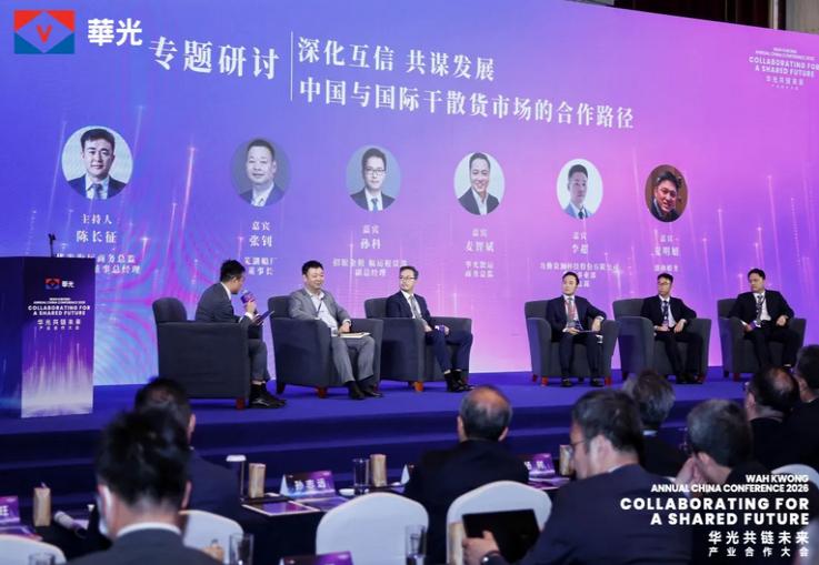 两场专题讨论为大会带来更深入的分析。其中一场聚焦干散货市场,呼应华光近期宣布成立结合“船东+运营”业务模式的华光散运,探讨干散货市场的合作路径。另一场则围绕人工智能与智慧航运展开,与会嘉宾分享人工智能、生成式 AI 以及数字孪生如何重塑船舶设计、安全标准、运营实践与数据生态。