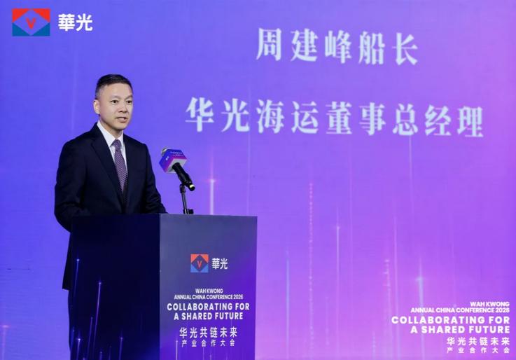 在开幕致辞中,华光海运董事总经理周建峰船长欢迎各方合作伙伴。周建峰船长指出,本次大会体现了七十年来华光与伙伴们的合作与文化交流传统。在当今复杂的环境中,韧性与合作仍是关键。周建峰船长强调,华光致力于在产业链中建立长期、基于信任的合作关系。