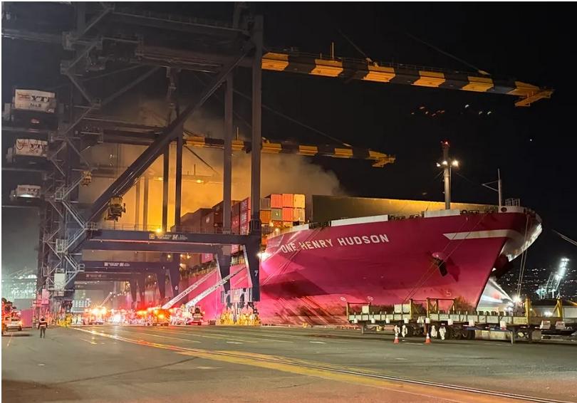 当地时间11月21日晚间,日本海洋网联船务(ONE)运营的集装箱船“One Henry Hudson”轮在洛杉矶港发生严重火灾并一度燃爆,多方报道预估目前约有100个集装箱受损。