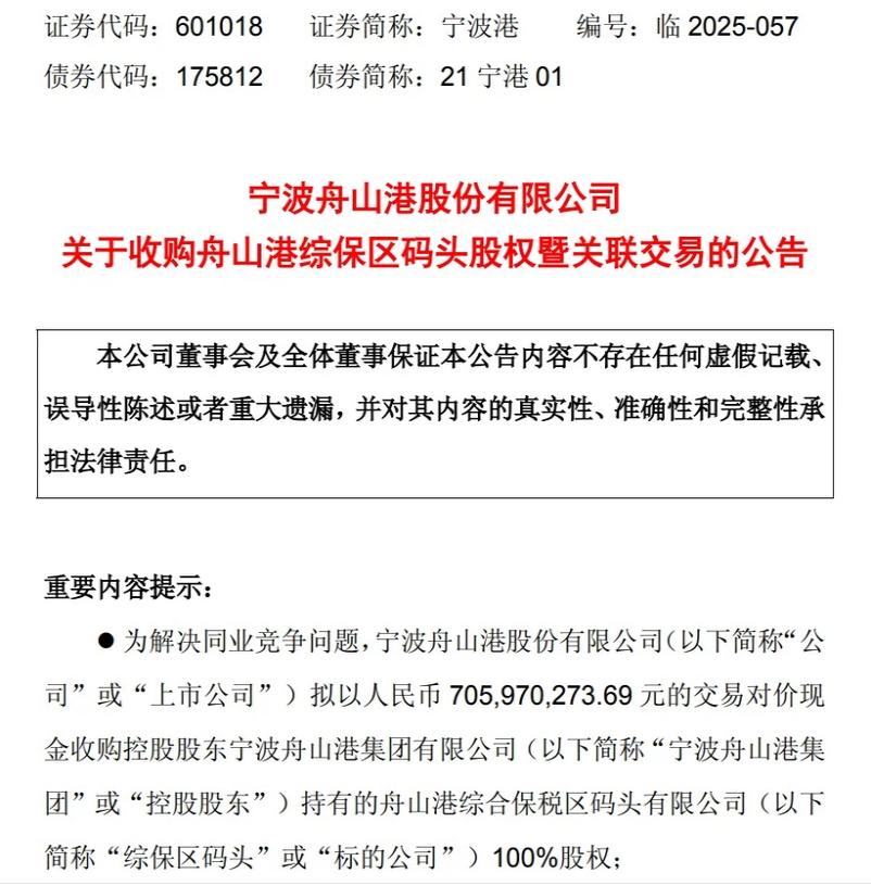 出资超7亿元,宁波港(601018)收购舟山港综保区码头