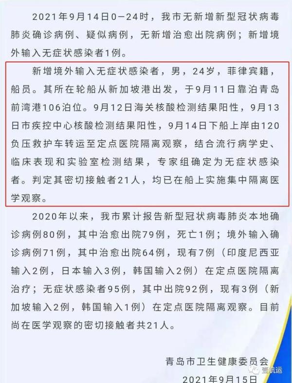 突发!青岛发现2名船员确诊,40名密切接触者被集中隔离 丨壹航运