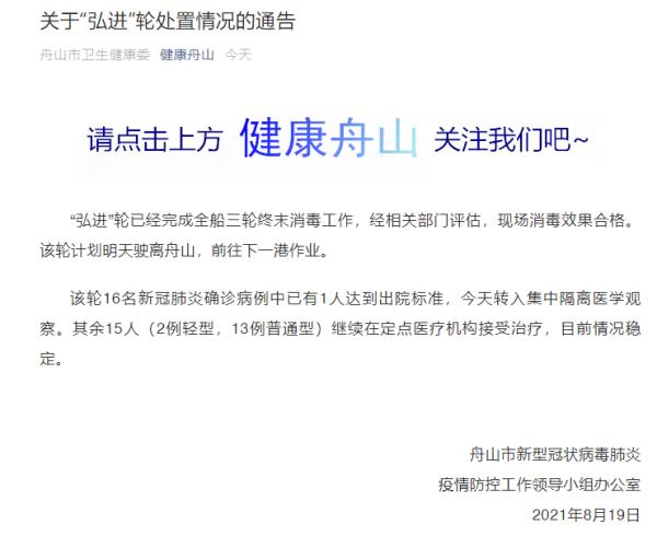 【更新】一人已出院,“弘进”轮明日驶离舟山