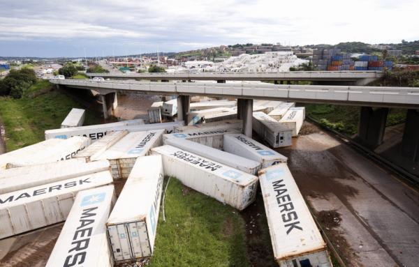 德班港遭遇60年最大洪灾,大量集装箱被冲走……